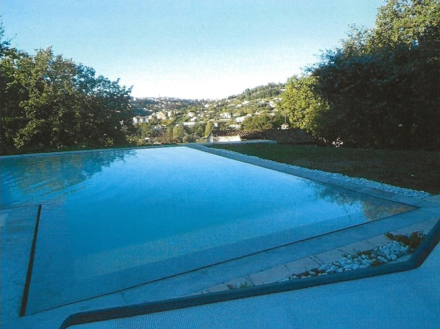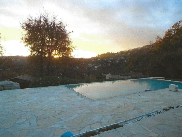 Terrain de 2500 m2 complètement clos (mur), portail électrique avec interphone. Une douzaine d'oliviers; propriété entourée d'une forêt de chênes. Piscine miroir 10 m avec chauffage (pompe à chaleur) et robot de nettoyage. Beaucoup de lumière, vue mer et vielle ville de Vence.